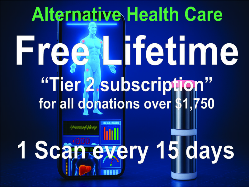 Get lifetime free Tier 2 subscription when you pledge $1750 towards the rapid implementation of the Alternative Health Care system.