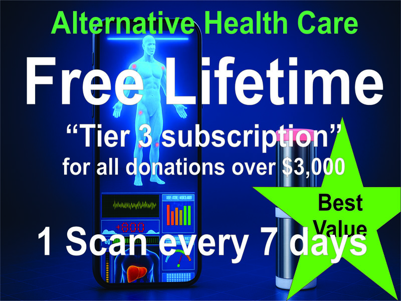 Get lifetime free Tier 3 subscription when you pledge $3000 towards the rapid implementation of the Alternative Health Care system.