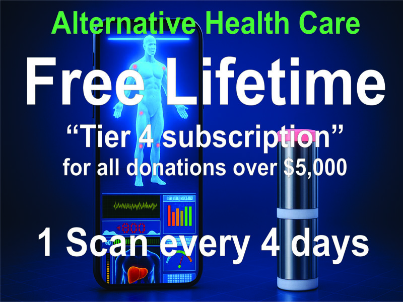 Get lifetime free Tier 4 subscription when you pledge $5000 towards the rapid implementation of the Alternative Health Care system.