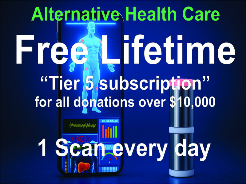 Get lifetime free Tier 5 subscription when you pledge $10000 towards the rapid implementation of the Alternative Health Care system.